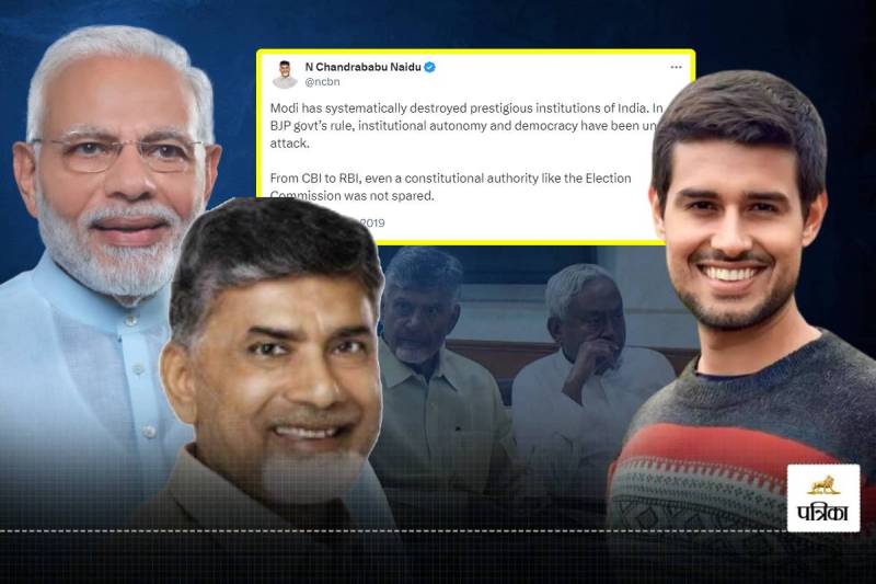 Dhruv Rathee on Chandrababu Naidu: यूट्यूबर ध्रुव राठी के हाल ही में किए गए ट्वीट से ना सिर्फ सोशल मीडिया पर हंगामा मचा दिया है बल्कि तेलुगु देशम पार्टी (टीडीपी) में भी विवाद खड़ा हो गया है। ध्रुव राठी के सोशल मीडिया प्लेटफॉर्म एक्स पर 2.5 मिलियन फॉलोअर्स हैं। राठी ने टीडीपी प्रमुख एन. चंद्रबाबू नायडू के 2019 के एक ट्वीट का हवाला दिया, जिसमें नायडू ने सीबीआई और आरबीआई सहित भारत के प्रतिष्ठित संस्थानों को कथित रूप से कमजोर करने के लिए तत्कालीन भाजपा सरकार की निंदा की थी। राठी ने नायडू की एक पुरानी पोस्ट शेयर करते हुए बस इतना कहा, "सहमत हूं,"।