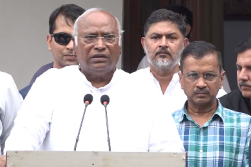 सातवें और आखिरी चरण की वोटिंग के बीच हुई INDIA ब्लॉक की बैठक के बाद कांग्रेस अध्यक्ष मल्लिकार्जुन खड़गे ने बड़ा दावा किया है। बैठक के बाद प्रेस कॉन्फ्रेंस में खड़गे ने दावा किया कि इंडिया गठबंधन लोकसभा चुनाव 2024 में 295 सीट से ज्यादा जीतेगा। बता दें कि ये बैठक कांग्रेस अध्यक्ष मल्लिकार्जुन खड़गे के घर पर हुई थी. इसमें लोकसभा चुनाव की समीक्षा हुई थी। खड़गे ने बताया कि करीब ढाई घंटे ये मीटिंग चली थी जिसमें कई मुद्दों पर बात हुई।