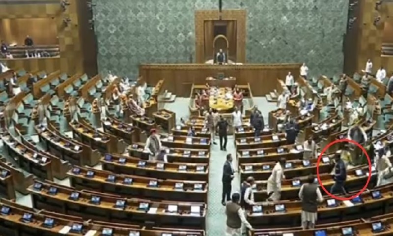 संसद की सुरक्षा में भारी चूक का मामला सामने आया है। संसद भवन पर हमले की बरसी के दिन आज लोकसभा की सुरक्षा में बड़ी चूक हुई है। बुधवार को लोकसभा की कार्यवाही के दौरान दो शख्स दर्शक दीर्घा से नीचे कूद गया। सदन में शख्स ने कुछ स्प्रे भी किया। एक आरोपी का नाम सागर बताया जा रहा है। महिला का नाम नीलम बताया जा रहा है। इसके कारण लोकसभा की कार्यवाही को स्थगित कर दिया गया है। हालांकि बाद में दोनों आरोपियों को पकड़ किया गया। दिल्ली पुलिस की आतंकवाद रोधी इकाई विशेष सेल उन लोगों से पूछताछ करने के लिए संसद के अंदर पहुंची, जिन्होंने लोकसभा में सुरक्षा उल्लंघन का कारण बना।