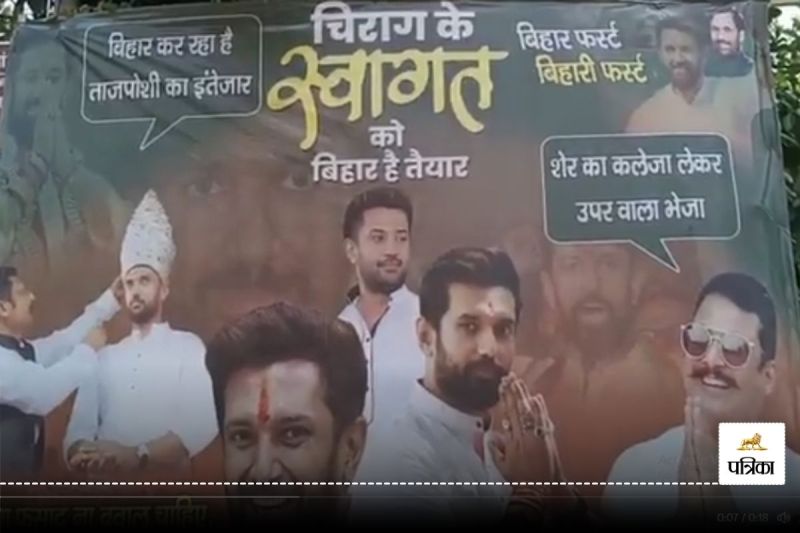बता दें कि पोस्टर में चिराग पासवान की कई तस्वीरें लगाई गई हैं, जिनमें ताजपोशी की तस्वीर भी शामिल है। पोस्टर में लिखा है- बिहार कर रहा है ताजपोशी का इंतजार, चिराग के स्वागत को बिहार है तैयार। इसके साथ ही पोस्टर में लिखा- दंगा, फसाद ना बवाल चाहिए, बिहार का सीएम चिराग चाहिए। बिहार फर्स्ट बिहारी फर्स्ट के नारे से साथ लिखा गया है, शेर का कलेजा लेकर ऊपर वाला भेजा है।