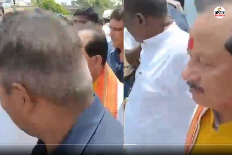 मंत्री केदार गुप्ता ने पीड़ित परिजन को मारा धक्का (Photo- Patrika)