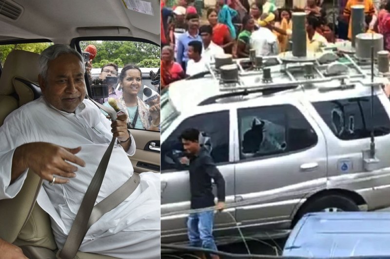Stones pelted on Chief Minister Nitish Kumar's convoy, glass of some vehicles broken