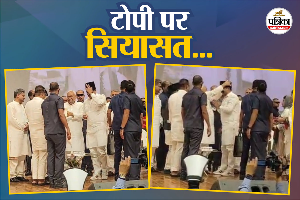 Bihar Politics: पटना के बापू सभागार में गुरुवार को बिहार राज्य मदरसा शिक्षा बोर्ड के स्थापना के 100 वर्ष पूरा होने पर कार्यक्रम आयोजित किया गया। इस कार्यक्रम में सीएम नीतीश कुमार भी पहुंचे थे। इस कार्यक्रम का एक वीडियो सोशल मीडिया पर काफी वायरल हो रहा है। दरअसल, इस वीडियो में सीएम नीतीश कुमार अपने मंत्री जमां खान को टोपी पहनाते नजर आ रहे है। इस वीडियो को लेकर कहा जा रहा है कि सीएम नीतीश कुमार ने टोपी पहनने से इनकार कर दिया था। वीडियो वायरल होने पर इस पर राजनीति भी तेज हो गई है।
