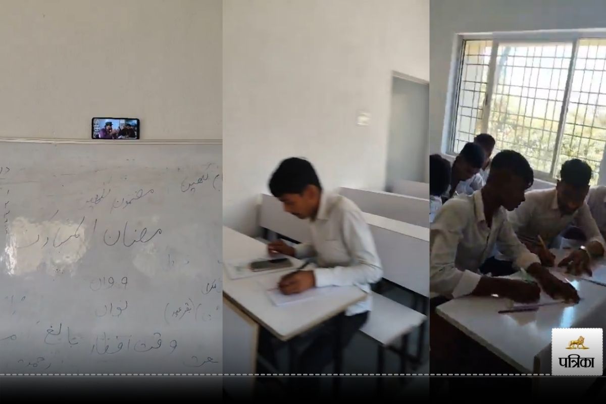 वीडियो में नजर आ रहा है कि कक्षा में छात्र परीक्षा दे रहे हैं और व्हाइट बोर्ड के ऊपर मोबाइल रखा हुआ है। ‘मोबाइल में चोली के पीछे क्या है’ वाला गाना चल रहा है। इसके अलावा कई छात्रों के पास मोबाइल भी नजर आ रहा है।