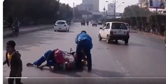 इंटरनेट पर अक्सर सड़क हादसों का वीडियो वायरल होता रहता है। इसी कड़ी में सोशल मीडिया पर एक और वीडियो जमकर वायरल हो रहा है, जिसमें साफ देखा जा सकता है कि एक शख्स मोटरसाइकिल चला रहा है पीछे एक छोड़ा लड़का और बुर्का पहने एक महिला बैठी हैं। तभी अचानक महिला का बुर्का मोटरसाइकिल के पहिये में फंस जाता है और बीच सड़क पर तीनों सवारियां गिर जाती हैं। जिसका वीडियो सोशल मीडिया जमकर वायरल हो रहा है। लोग वायरल वीडियो पर खूब कमेंट कर रहे हैं।
