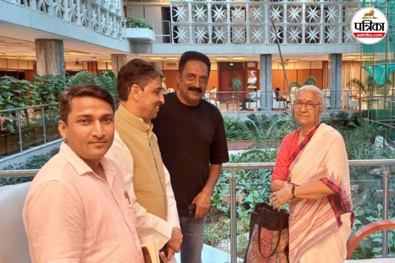 संसद पहुंचे मेधा पाटकर व प्रकाश राज । फोटो: X Handle Sourav Roy Barman
