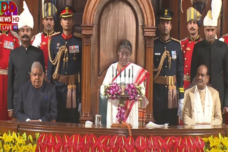 राष्ट्रपति ने अभिभाषण में कहा कि आज एक तरफ देश में अयोध्या धाम का निर्माण हो रहा है, तो दूसरी तरफ आधुनिक संसद भवन भी बन रहा है। एक तरफ हमने केदारनाथ धाम, काशी विश्वनाथ धाम और महाकाल महालोक का निर्माण किया, तो वहीं हर ज़िले में हमारी सरकार मेडिकल कॉलेज भी बनवा रही है।