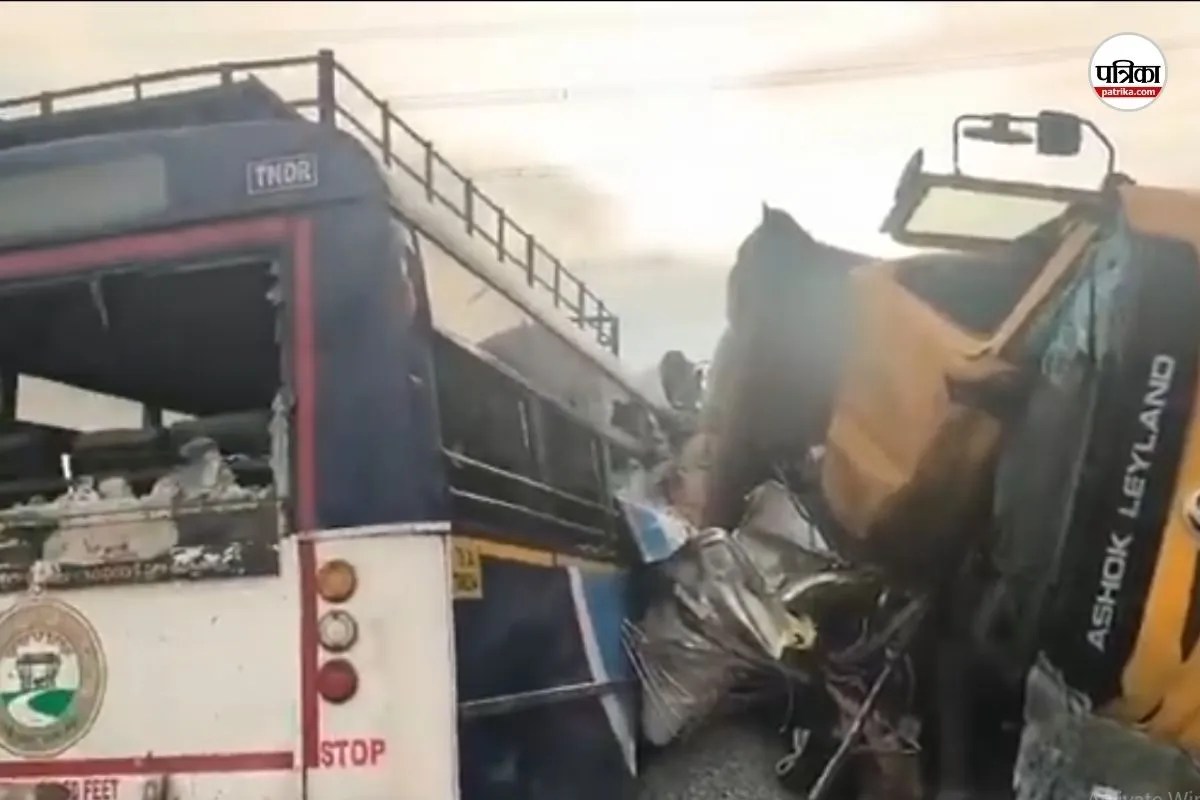 तेलंगाना के रंगा रेड्डी जिले के चेवेला मंडल में सोमवार सुबह एक दिल दहला देने वाले सड़क हादसे ने पूरे इलाके को सदमे में डाल दिया है। मिरजागुड़ा गांव के पास हैदराबाद-बीजापुर हाईवे पर एक तेज रफ्तार टिपर लॉरी ने एक यात्री बस को जोरदार टक्कर मार दी, जिसमें कम से कम 24 लोगों की मौके पर ही मौत हो गई। इनमें एक तीन माह की मासूम बच्ची भी शामिल है। बस में सवार करीब 70 यात्रियों में से कई गंभीर रूप से घायल हो गए हैं।