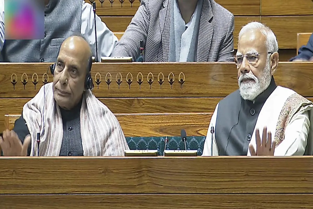 संसद में पीएम मोदी और रक्षा मंत्री राजनाथ सिंह। (फोटो- ANI)