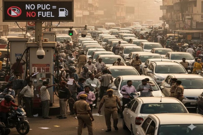 दिल्ली में प्रदूषण के चलते पेट्रोल, डीजल और सीएनजी के लिए PUC प्रमाण पत्र अनिवार्य। (फोटो: AI Generated)