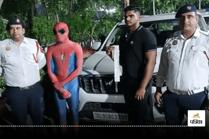 Delhi Guy Stunt Spider Man dressed man Sitting on Scorpio Delhi Police take action