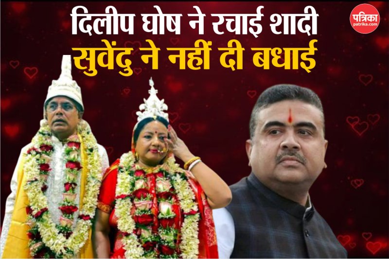 Dilip Ghosh wedding: एक समय के लिए राजनीतिक रूप से संवेदनशील पश्चिम बंगाल में शुक्रवार शाम को प्रतिद्वंद्वी भाजपा और तृणमूल कांग्रेस (टीएमसी) एक ही पाले में नजर आए। पूर्व भाजपा प्रदेश अध्यक्ष दिलीप घोष ने पार्टी सहयोगी रिंकू मजूमदार से शादी कर ली। उन्हें बधाइयां देने वालों में टीएमसी सुप्रीमो और मुख्यमंत्री ममता बनर्जी भी शामिल रहीं।