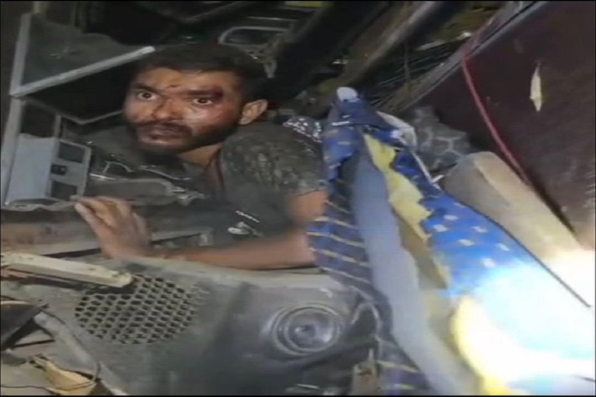 घंटों तक दुर्घटनाग्रस्त ट्रक में फंसा रहा ड्राइवर ( फोटो - एक्स पोस्ट )