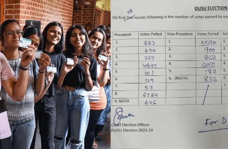DUSU Results 2023: दिल्ली विश्वविद्यालय छात्रसंघ चुनाव अब अपने पूरे आवेग में है। मतदान के बाद परिणाम का बहुत ही बेसब्री से इंतजार किया जा रहा है। अब तक आठ चक्र की मतगणना पूरी हो गई है।अखिल भारतीय विद्यार्थी परिषद यानी एबीवीपी प्रत्याशी चारों सीटों पर सबसे आगे चल रहे हैं। परिषद के तुषार को 6784 वोट मिले हैं जबकि भारतीय राष्ट्रीय छात्र संघ के हितेश को 4807 वोट मिले हैं। तुषार अध्यक्ष पद के लिए 1977 से आगे चल रहे हैं। इसके बाद यहां से का जीत रास्ता तुषार डेढ़ा के लिए साफ माना जा रहा है।