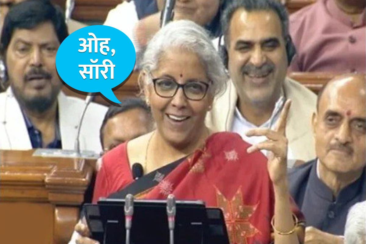 वित्त मंत्री निर्मला सीतारमण की बजट पढ़ते वक्त फिसली जुबान, पर मुस्कुराते हुए कहा, ओह, सॉरी, जानें क्या हुआ