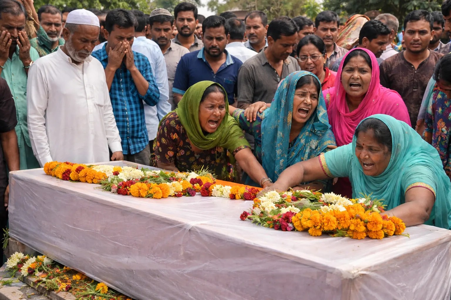 शव के पैतृक गांव चिखली लौटने पर बिलख पड़े ग्रामीण: चार साल पाकिस्तान की जेल में रहने के बाद ताबूत में लौटा मछुआरा का शव (इमेज सोर्स: AI जनरेटेड)