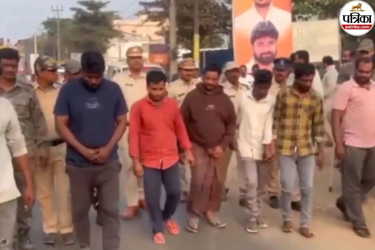 पुलिस ने आरोपियों को सड़क पर घुमाया। फोटो- X/@Darshan_Ysj