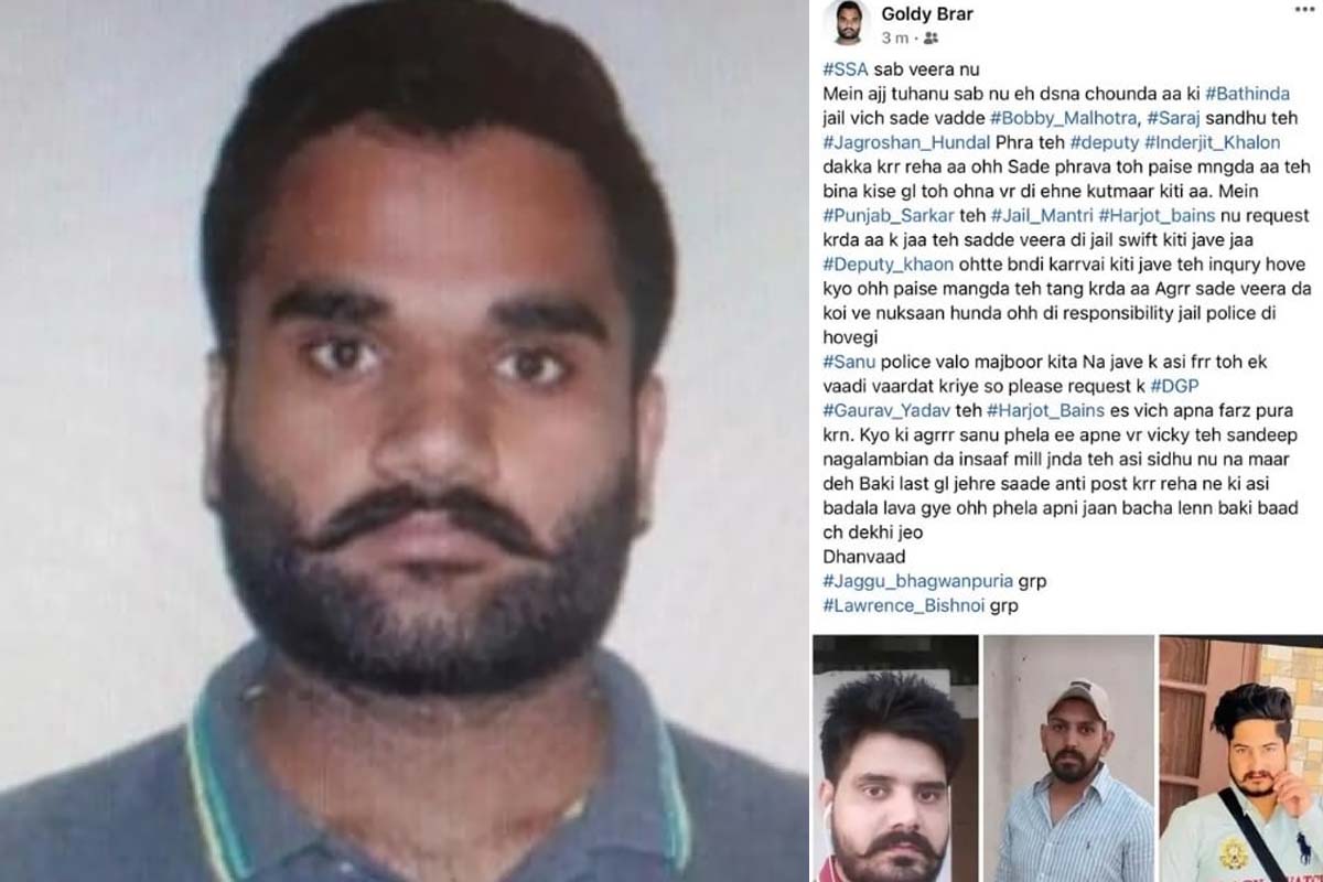 गोल्डी बराड़ ने अपने फेसबुक पोस्ट में लिखा," मैं आज तुम सभी को बताना चाहता हूँ कि बठिंडा जेल में हमारे लड़के बॉबी मल्होत्रा, सरज संधू, जगरोशन हुंडल को डिप्टी जेलर इंद्रजीत खलोन परेशान कर रहा है। वो हमारे भाइयों से पैसे मांग रहा है और उनके साथ मारपीट कर करता है। मैं पंजाब सरकार और जेल मंत्री हरजोत बेन्स से अनुरोध करता हूँ कि मेरे लड़कों को इस जेल से शिफ्ट किया जाए और डिप्टी जेलर इंद्रजीत का ट्रांसफ़र किया जाए। इस जेलर के खिलाफ जांच होनी चाहिए कि वो पैसे क्यों माँगता है। अगर मेरे भाइयों को कोई नुकसान पहुंचा तो उसकी जिम्मेदार जेल पुलिस होगी।"