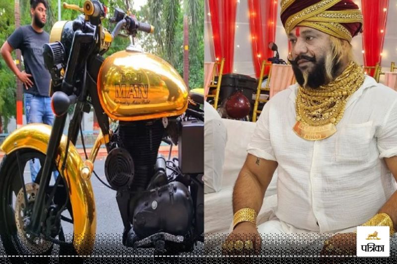 Gold Man Of Bihar: कहते हैं शौक पूरा करने के लिए इंसान किसी भी हद तक जा सकता है। शौक पूरा करने से इंसान को बेइंतहा खुशी मिलती है। हर किसी के लिए खुशी के मायने अलग होते हैं। ऐसे में बिहार के एक ऐसे ही शख्स हैं जिनको सोने का आभूषण पहनने का बेहद शौक है। बिहार के गोल्डमैन (Goldman of Biahr) के नाम से जाने जाने वाले प्रेम सिंह का सोना प्रेम किसी से छुपा नहीं है। गोल्डन कलर की यह चमचमाती हुई सोने की बुलेट की सारी खसियत बुलेट वाली ही है, लेकिन इसके बॉडी पर 24 कैरेट गोल्ड की परत चढ़ाई गई है। इस बाइक में 200 से 300 ग्राम सोने की परत चढ़ाई गई है। इसमें 13 से 14 लाख रुपए खर्च हुआ हैं। प्रेम कुमार सिंह जो गोल्डन मैन ऑफ बिहार के नाम से जाने जाते हैं।