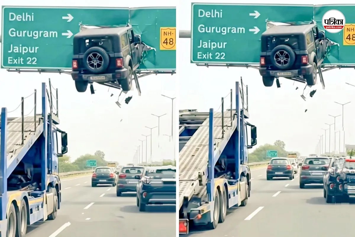 Viral Video Fact Check: सोशल मीडिया पर पिछले कुछ दिनों से एक वीडियो तेजी से वायरल हो रहा है। इसमें दावा किया जा रहा है कि गुरुग्राम के एनएच-48 पर एक तेज रफ्तार थार (Thar) सड़क किनारे लगे साइनबोर्ड में जाकर लटकी हुई नजर आई। लोग इसे सच मानकर शेयर कर रहे हैं, लेकिन यह वीडियो पूरी तरह फेक है।