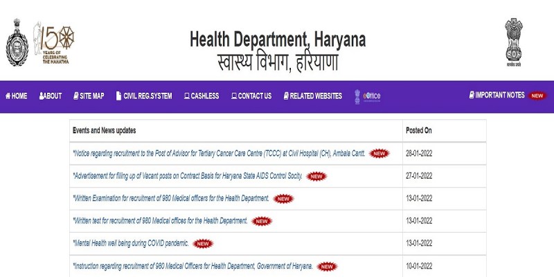 Haryana Health Department Website: