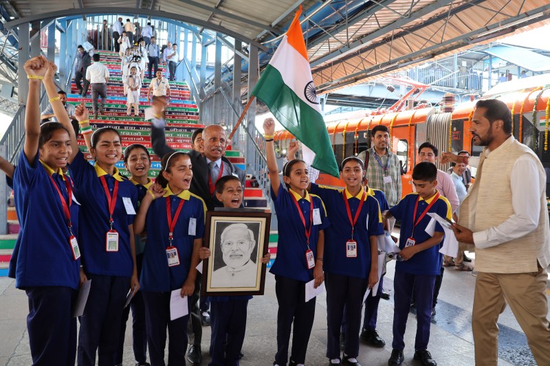 SRINAGAR, JUN 6 (UNI):- Vande Bharat Express adorned with flowers, ready to be flagged off by Prime Minister Narendra Modi, set to connect Katra to Srinagar, in Katra on Friday. UNI PHOTO-24U