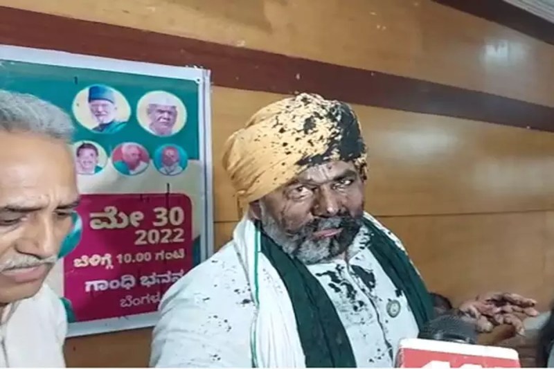 Farmer Leader Rakesh Tikait: भारतीय किसान संघ के प्रवक्ता राकेश टिकैत बेंगलुरू में प्रेस कांफ्रेस कर रहे थे, जहां हंगामा हो गया है। हंगामा करने वाले लोगों ने मोदी-मोदी के नारे लगाते हुए कुर्सियां तोड़ी हैं। इसके साथ ही राकेश टिकैत पर काली स्याही भी फेंकी है। इसके बाद पुलिस ने आरोपी को हिरासत में ले लिया है। मीडिया रिपोर्ट के अनुसार स्याही फेंकने में स्थानीय किसान नेता कोडिहल्ली चंद्रशेखर का हाथ है।