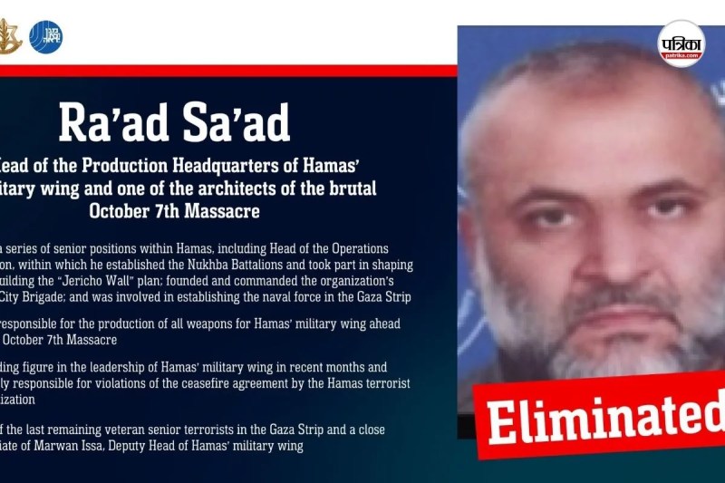 IDF ने कहा कि राद साद हाल के महीनों में हमास के सबसे अनुभवी और खतरनाक आतंकियों में गिना जा रहा था। वह पीस डील के बावजूद भी हमास के सैन्य ढांचे को फिर से खड़ा करने की कोशिशों में जुटा था। इजरायली सेना ने कहा कि राद साद गाजा सिटी ब्रिगेड का संस्थापक और कमांडर रह चुका था। वह हमास की नेवल ब्रिगेड को भी तैयार करने में जुटा हुआ था।