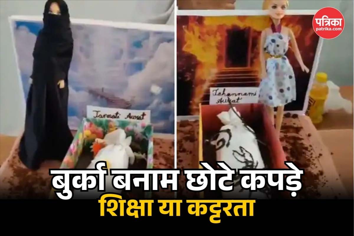 Karnataka Burqa Controversy:कर्नाटक के चामराजनगर के एक निजी स्कूल में विज्ञान प्रदर्शनी के दौरान छात्रा चार की एक छात्रा की ओर से बनाए गए मॉडल और विवादित बयान से हड़कंप मच गया। यह मॉडल और बयान सोशल मीडिया पर वायरल हो रहा है। वायरल वीडियो के मुताबिक विज्ञान प्रदर्शनी में एक छात्रा ने दो गुडिय़ा बनाईं, जिनमें से एक बुर्का पहने हुए है और दूसरी छोटी ड्रेस में है। बुर्का पहनी हुई गुडिय़ा को फूलों से सजे ताबूत में रखा गया है, जबकि दूसरी को सांप और बिच्छुओं से भरे ताबूत में रखा गया है। इस वीडियो में छात्रा कहती है कि अगर आप बुर्का पहनते हैं तो मरने के बाद शरीर को कुछ नहीं होता। वहीं छोटे कपड़े पहनने पर नरक में जाना पड़ता है, जहां सांप और बिच्छू शरीर को खा जाते हैं।