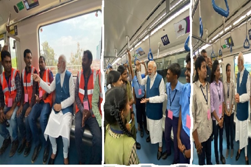छात्रों से बातचीत करने के लिए प्रधानमंत्री मोदी मेट्रो में खड़े रहे। इस दौरान बच्चे भी काफी एक्साइटिड नजर आएं। उन्होंने यात्रा के दौरान मेट्रो की वूमन ड्राइवर्स से भी बात की और बीएमआरसीएल के कर्मचारियोंए निर्माण मजदूरों के साथ बैठे। मेट्रो यात्रा में मुख्यमंत्री बसवराज बोम्मई और अन्य उनके साथ मौजूद रहे।