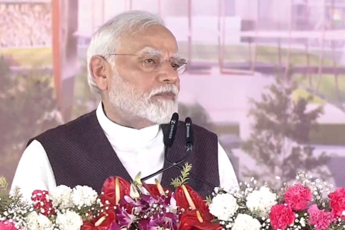 शिलान्यास समारोह के बाद लोगों को संबोधित करते हुए प्रधानमंत्री मोदी ने कहा कि हमें ऐसा समाज तैयार करना है जिसमें किसी नारी को आगे बढ़ने के लिए किसी की भी जरूरत न पड़े। इसिलिए नारी शक्ति वंदन अधिनियम लाया गया है। वहीं, कुछ लोगों को वंदन शब्द से दिक्कत है। पीएम ने पूछा कि माताओं-बहनों का वंदन नहीं होगा तो किसका होगा। इससे पहले महिलाओं ने पीएम मोदी पर पुष्प वर्षा कर अभिनंदन किया।