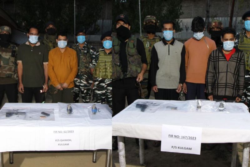 जम्मू - कश्मीर में सेना और पुलिस अलर्ट मोड़ पर है। पूरी घाटी में सर्च ऑपेशन चलाए जा रहे हैं और आतंकी गतिविधियों के खिलाफ कार्रवाई की जा रही है। इसी कड़ी में रविवार को कुलगाम में पुलिस और सीआरपीएफ को बड़ी कामयाबी हाथ लगी है। पुलिस ने दो आतंकी माड्यूल और 5 हाईब्रिड आतंकवादियों को दबोचा किया है। इसके अलावा पुलिस ने गोला बारूद समेत कई हथियार भी बरामद किए हैं।