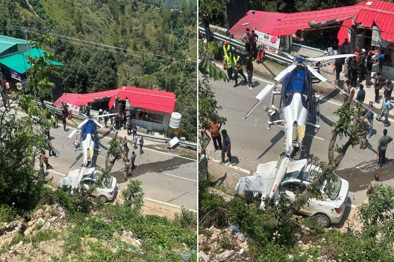 उत्तराखंड में हेलिकॉप्टर की हाइवे पर इमरजेंसी लैंडिंग (Photo - IANS)
