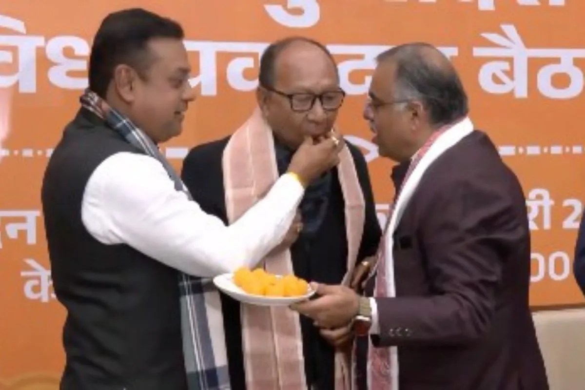 केंद्रीय पर्यवेक्षक तरुण चुघ ने पटका पहनाकर युमनाम खेमचंद का स्वागत किया। इस मौके पर मणिपुर स्टेट प्रेसिडेंट और नॉर्थ ईस्ट के इंचार्ज संबित पात्रा मौके पर मौजूद थे। मणिपुर में नई सरकार के गठन के लिए भारतीय जनता पार्टी के विधायक सोमवार को दिल्ली पहुंच गए थे।