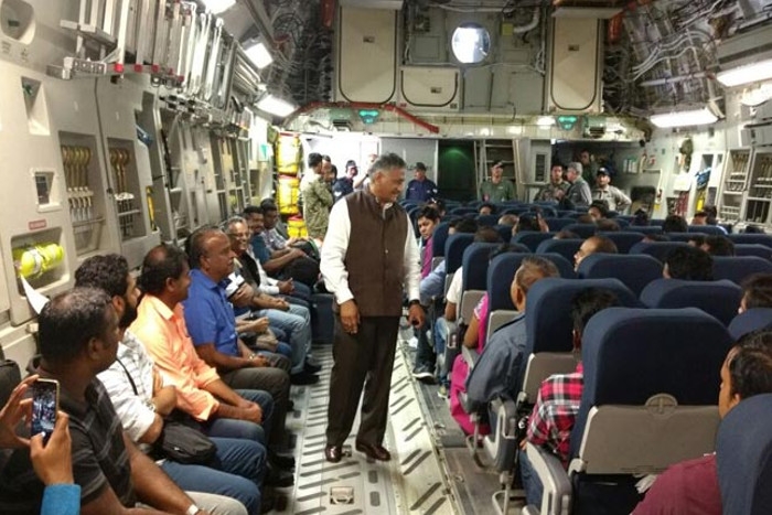 हिंसाग्रस्त दक्षिण सूडान में फंसे 156 लोगों को वहां से सुरक्षित निकाल कर वायु सेना का विमान सी-17 शुक्रवार सुबह यहां अंतराष्ट्रीय हवाई अड्डे लेकर पहुंचा। लोगों को लाने के लिए 'ऑपरेशन संकटमोचन' रक्षा राज्य मंत्री जनरल (सेवानिवृत्त) वीके सिंह की देखरेख में चलाया गया। इन 156 लोगों में 46 का संबंध केरल से है इसके अलावा इनमें दो नेपाली नागरिक, सात महिलाएं और तीन बच्चे भी शामिल हैं।