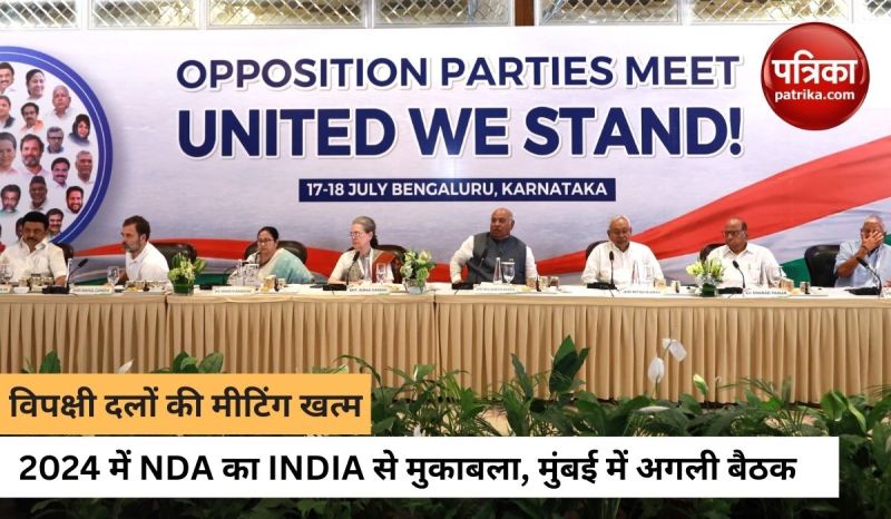विपक्षी दलों की बैठक खत्म होने के बाद कांग्रेस अध्यक्ष मल्लिकार्जुन खरगे ने प्रेस कॉफ्रेंस में कहा कि सभी 26 पार्टियों के साथ मिलकर हमने इस गठबंधन को इंडियन नेशनल डेवेलपमेंटल इंक्लूसिव एलायंस(INDIA) नाम दिया है। उन्होंने आगे कहा कि विपक्षी दलों की अगली मीटिंग मुंबई में होगी। वहां हम समन्वयकों के नाम पर चर्चा करेंगे और उनके नाम का ऐलान करेंगे। जल्द ही मुंबई बैठक के लिए तारीख की घोषणा की जाएगी।