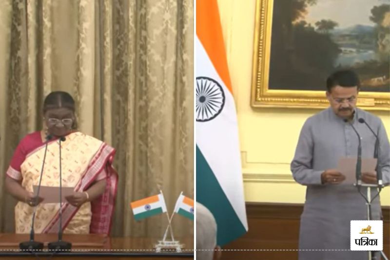 राष्ट्रपति द्रौपदी मुर्मू BJP सांसद भर्तृहरि महताब को 18वीं लोकसभा के प्रोटेम स्पीकर की शपथ दिलाते हुए