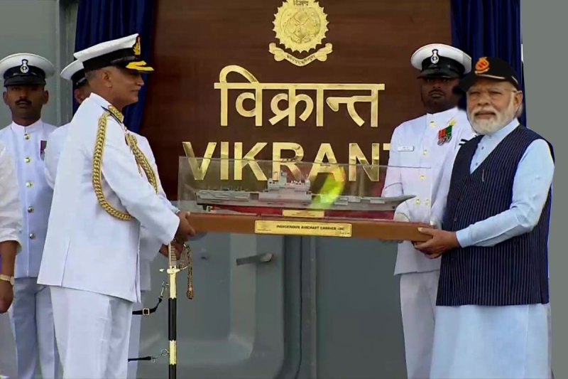 प्रधानमंत्री नरेंद्र मोदी ने कोच्चि में भारतीय नौसेना को देश के पहले स्वदेशी विमानवहक पोत INS Vikrant सौंप दिया। पीएम मोदी ने कोचीन शिपयार्ड में 20,000 करोड़ रुपये की लागत से बने स्वदेशी अत्याधुनिक स्वचालित यंत्रों से युक्त विमान वाहक पोत आईएनएस विक्रांत का जलावतरण किया. इस कार्यक्रम के दौरान प्रधानमंत्री नए नौसैनिक ध्वज (निशान) का भी अनावरण किया। इस मौके पर रक्षा मंत्री राजनाथ सिंह भी मौजूद रहे। इस मौके पर पीएम मोदी ने कहा, केरल के समुद्री तट पर पूरा भारत एक नए भविष्य के सूर्योदय का साक्षी बन रहा है. INS विक्रांत पर हो रहा यह आयोजन, विश्व क्षितिज पर भारत के बुलंद होते हौसलों की हुंकार है। जानते हैं पीएम मोदी के संबोधन से जुड़ी 10 बड़ी बातें।