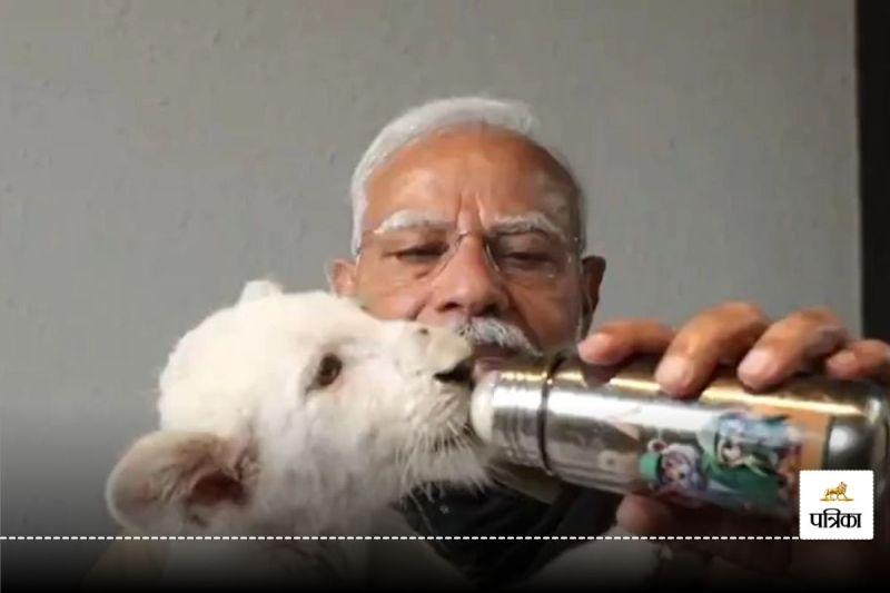 PM Modi ने शेर के बच्चे को पिलाया दूध