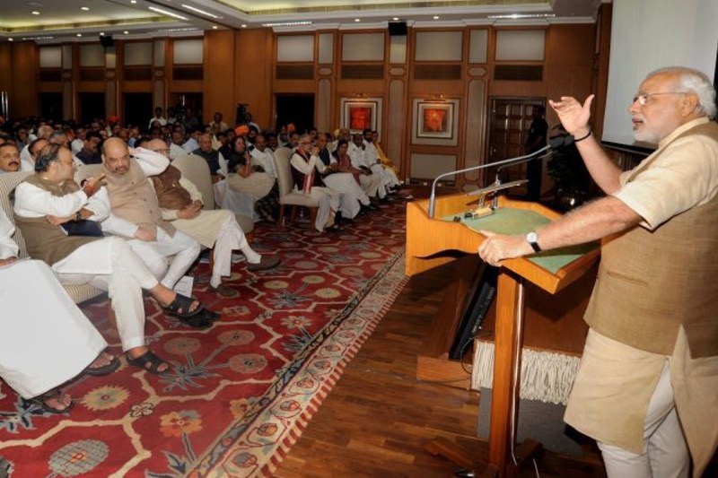वह सबसे पहले महात्मा गांधी के समाधि स्थल राजघाट पहुंचे और राष्ट्रपिता को श्रद्धांजलि अर्पित की। इसके बाद पूर्व प्रधानमंत्री अटल बिहारी वाजपेयी के समाधि स्थल 'सदैव अटल' पर जाकर उन्हें भी श्रद्धांजलि अर्पित की। अटल बिहारी वाजपेयी के समाधि स्थल पर काफी संख्या में मौजूद लोगों ने 'भारत माता की जय', 'मोदी-मोदी' और ' मोदी जी को - जय श्रीराम' जैसे नारों से उनका अभिवादन किया। लोग 'अटल बिहारी वाजपेयी - अमर रहे' के नारे लगाते भी सुनाई दिए।