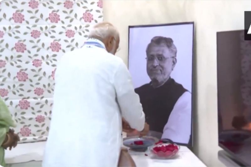 प्रधानमंत्री नरेंद्र मोदी सोमवार की शाम बिहार की राजधानी पटना पहुंचे। पटना हवाई अड्डे से वे सीधे भाजपा के वरिष्ठ नेता और पूर्व उप मुख्यमंत्री सुशील कुमार मोदी के राजेंद्र नगर स्थित आवास पर पहुंचे और उनकी तस्वीर पर पुष्प अर्पित कर उन्हें श्रद्धांजलि दी। प्रधानमंत्री नरेंद्र मोदी पूर्व उप मुख्यमंत्री के परिजनों से मिले और उन्हें ढाढस बंधाया।