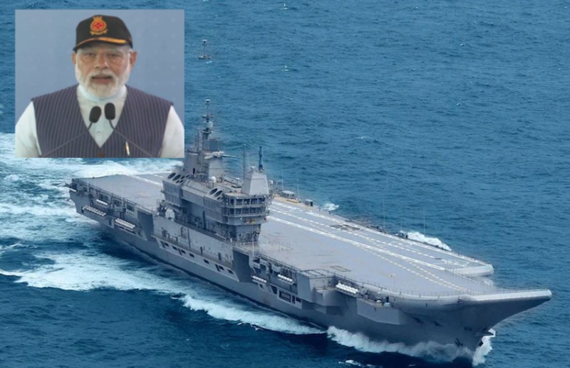 प्रधानमंत्री नरेंद्र मोदी ने शुक्रवार को नौसेना के नए निशान का अनावरण किया। इस मौके पर रक्षा मंत्री राजनाथ सिंह, राज्यपाल आरिफ मोहम्मद खान, मुख्यमंत्री पिनाराई विजयन समेत अन्य सैन्य अधिकारी मौजूद रहे। पीएम मोदी ने कहा कि आज केरल के समुद्री तट पर भारत, हर भारतवासी, एक नए भविष्य के सूर्योदय का साक्षी बन रहा है। विक्रांत पर हो रहा ये आयोजन विश्व क्षितिज पर भारत के बुलंद होते हौसलों की हुंकार है। विक्रांत विशाल है, विराट है, विहंगम है, विक्रांत विशिष्ट है, विक्रांत विशेष भी है, विक्रांत केवल एक युद्धपोत नहीं है। ये 21वीं सदी के भारत के परिश्रम, प्रतिभा, प्रभाव और प्रतिबद्धता का प्रमाण है। पीएम मोदी कहा कि आज विक्रांत को देखकर समंदर की ये लहरें आह्वान कर रही हैं।अमर्त्य वीर पुत्र हो, दृढ़-प्रतिज्ञ सोच लो, प्रशस्त पुण्य पंथ है, बढ़े चलो-बढ़े चलो। ये स्वदेशी सामर्थ्य, स्वदेशी संसाधन और स्वदेशी कौशल का प्रतीक है। इसके एयरबेस में जो स्टील लगी है, वो स्टील भी स्वदेशी है।