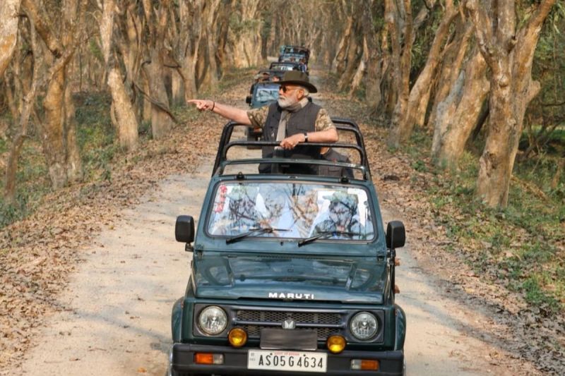 पीएम नरेंद्र मोदी ने असम के काजीरंगा राष्ट्रीय उद्यान में हाथी और जीप सफारी का लिया आनंद