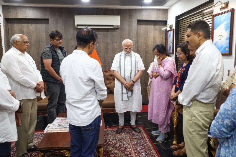 प्रधानमंत्री नरेंद्र मोदी ने गुजरात के पूर्व सीएम विजय रूपाणी के परिवार से मुलाकात की और अपनी संवेदना व्यक्त की। पूर्व सीएम की कल अहमदाबाद में हुई एयर इंडिया फ्लाइट दुर्घटना में मृत्यु हो गई थी।