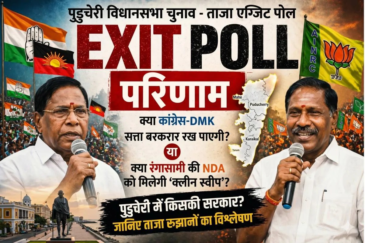 Exit Polls: पुडुचेरी विधानसभा चुनाव के मतदान संपन्न होने के बाद अब एग्जिट पोल (Exit Polls) के आंकड़े सामने आ गए हैं। इन शुरुआती अनुमानों ने राजनीतिक गलियारों में हलचल तेज कर दी है। देश के प्रमुख मीडिया संस्थानों और सर्वे एजेंसियों के मुताबिक, इस बार केंद्र शासित प्रदेश पुडुचेरी में सत्ता परिवर्तन की प्रबल संभावना है। रुझान साफ तौर पर बता रहे हैं कि एन रंगासामी के नेतृत्व वाले एनडीए ( एनडीए - जिसमें एआईएनआरसी, भाजपा और एआईएडीएमके शामिल हैं) गठबंधन को पूर्ण बहुमत मिल सकता है, जबकि कांग्रेस और डीएमके के यूपीए गठबंधन को करारी शिकस्त का सामना करना पड़ सकता है।