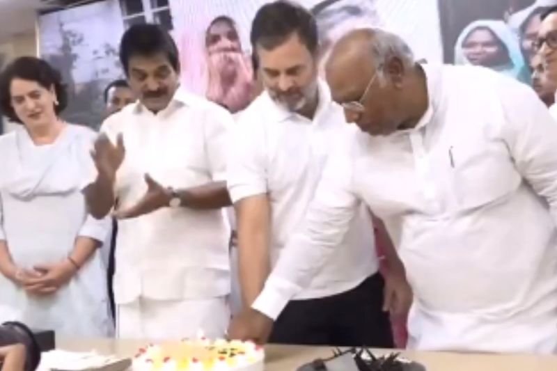 कांग्रेस सांसद राहुल गांधी ने बुधवार को दिल्ली में पार्टी मुख्यालय में अपना 54वां जन्मदिन मनाया। इसका वीडियो भी सामने आया है। वीडियो में देखा जा सकता है कि कांग्रेस दफ्तर में राहुल गांधी ने पार्टी अध्यक्ष मल्लिकार्जुन खड़गे, प्रियंका गांधी वाड्रा, केसी वेणुगोपाल, अजय माकन समेत कई नेताओं की मौजूदगी में अपना बर्थडे केक काटा। राहुल गांधी ने केक काट कर सबसे पहले कांग्रेस अध्यक्ष मल्लिकार्जुन खड़गे को खिलाया। इसके बाद प्रियंका गांधी ने भाई राहुल को केक खिलाया। सोशल मीडिया पर यह वीडियो वायरल हो रहा है।