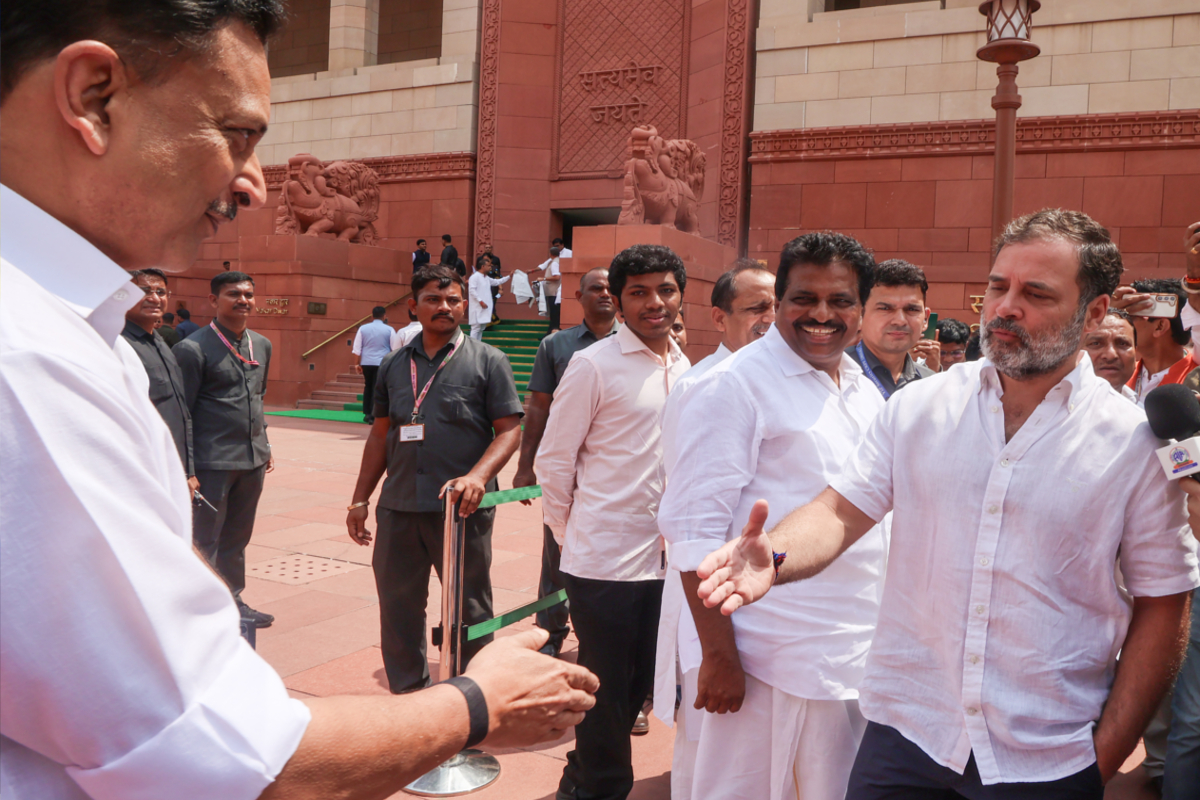 संसद परिसर में बिहार में मतदाता सूचियों और विशेष गहन पुनरीक्षण अभियान को लेकर विपक्ष आज सुबह विरोध प्रदर्शन करते हुए मीडियो से बात कर रहे थे। तभी बीजेपी सांसद रूडी उनके पास आते हुए दिखे। राहुल गांधी ने उनका अभिवादन किया। इसके बाद उन्होंने मीडिया से कहा कि कांग्रेस और भाजपा के बीच अनकॉमन हैंडशेक है। वैसे, बधाई हो। इसके जवाब में कांग्रेस नेता राहुल को धन्यवाद कहा।