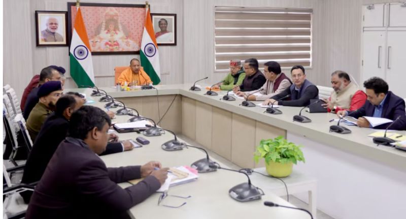 राम मंदिर प्राण प्रतिष्ठा की तैयारी में अधिकारियों के साथ बैठक करते हुए सीएम योगी