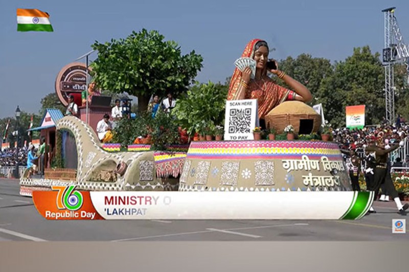 ग्रामीण विकास मंत्रालय की झांकी 'लखपति दीदी पहल' को दर्शाती है, जो उद्यमिता, आत्मनिर्भरता और शिक्षा के माध्यम से महिलाओं के आर्थिक सशक्तिकरण पर केंद्रित है। सामने की ओर लखपति दीदी की एक चमकदार मूर्ति है, जो वित्तीय स्वतंत्रता और आत्मविश्वास प्राप्त करने वाली एक सफल महिला उद्यमी का प्रतीक है। आसपास के दृश्यों में महिलाओं को बुनाई, हस्तशिल्प और कृषि जैसी आर्थिक गतिविधियों में संलग्न दिखाया गया है, जो महिलाओं की आजीविका पर पहल के परिवर्तनकारी प्रभाव को दर्शाता है।