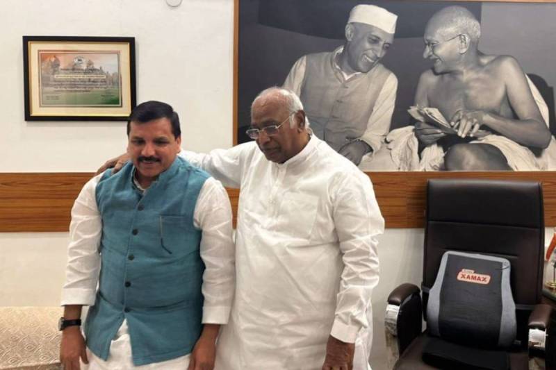 Sanjay Singh Met Mallikarjun Kharge: आम आदमी पार्टी (आप) के सांसद संजय सिंह ने रविवार को दिल्ली में कांग्रेस अध्यक्ष मल्लिकार्जुन खड़गे से उनके आवास पर मुलाकात की और लोकसभा चुनाव में इंडिया ब्लॉक के कॉमन मिनिमम प्रोग्राम (सीएमपी) पर चर्चा की।